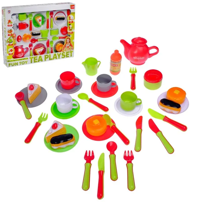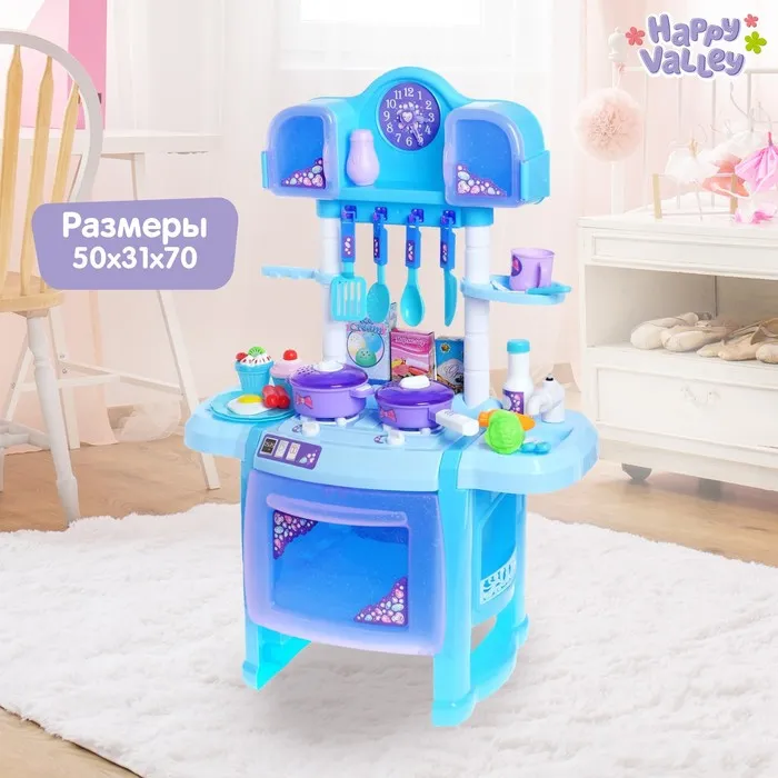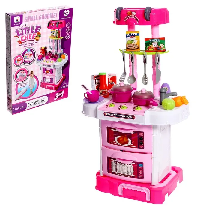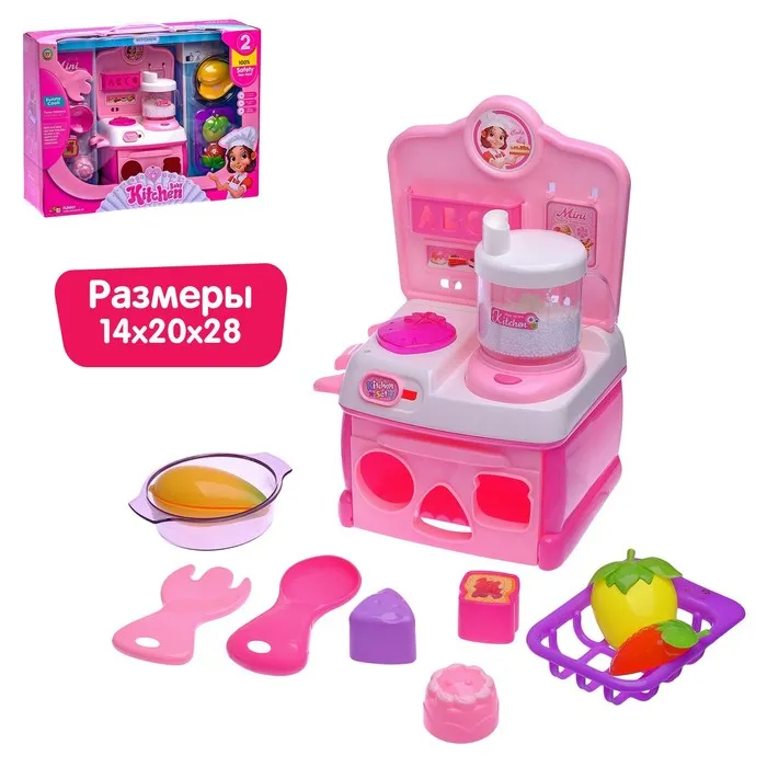 - Фартук. Практичный и удобный фартук с карманом, куда можно положить все необходимые кухонные принадлежности — игрушечные половники, лопатки и многое другое. Фартук завязывается на талии, это позволяет легко регулировать его размер.