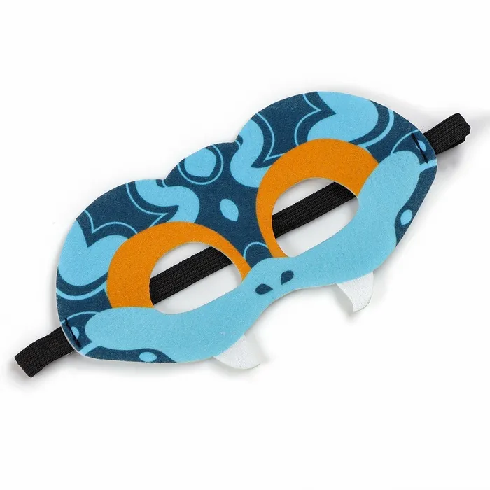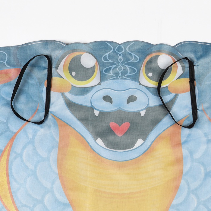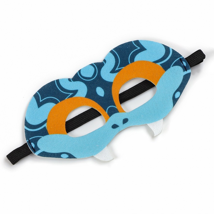 - Маска выполнена в виде мордочки змейки и надёжно держится на голове с помощью резинки.