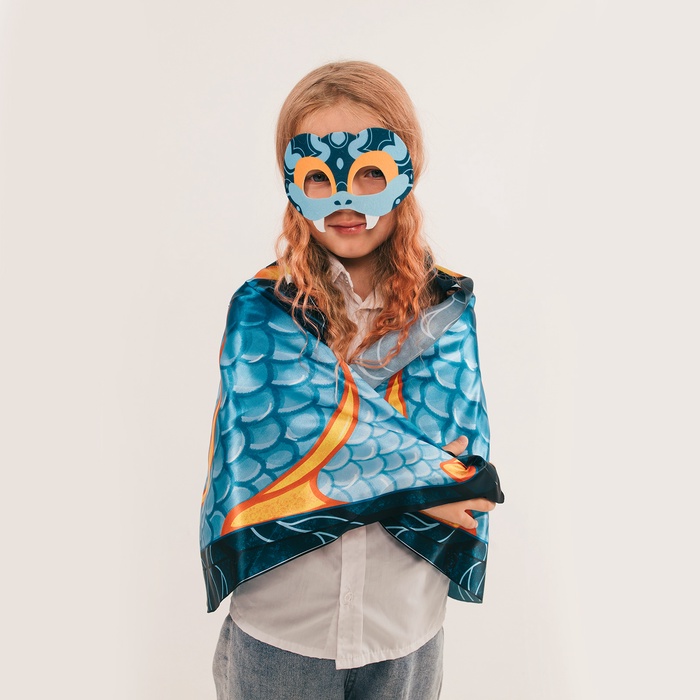 Набор «Прикольная Змейка» — оригинальный и запоминающийся образ. В комплект входят яркая накидка и маска, выполненные в ярком синем цвете.