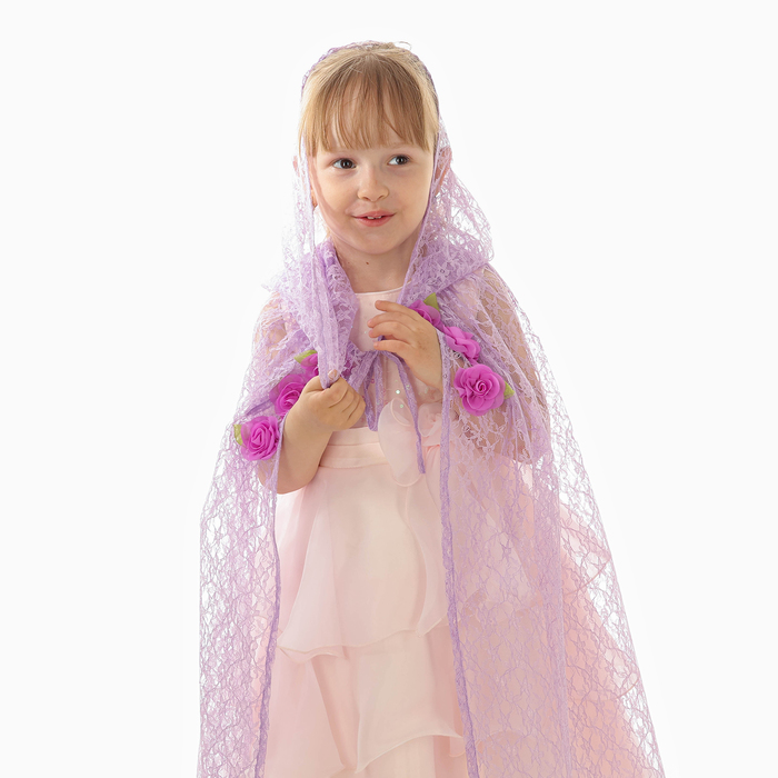 Карнавальный костюм «Принцесса», плащ гипюр, корона, длина 100 см, цвет аметистовый — Характеристики