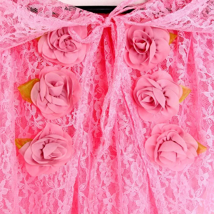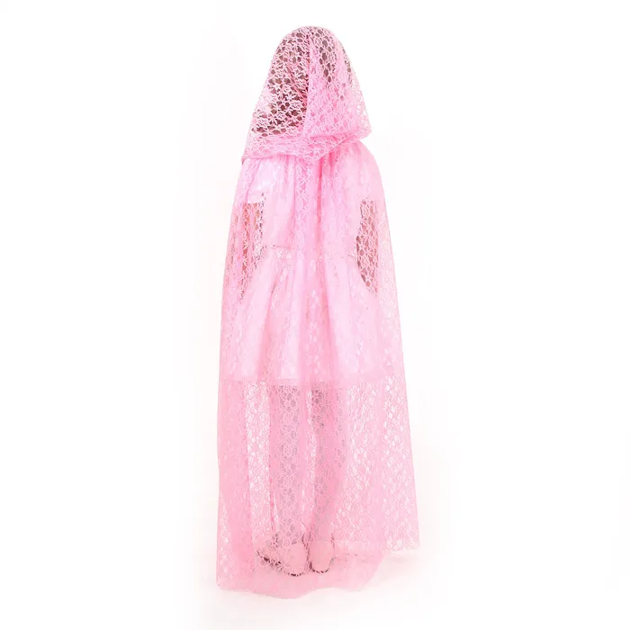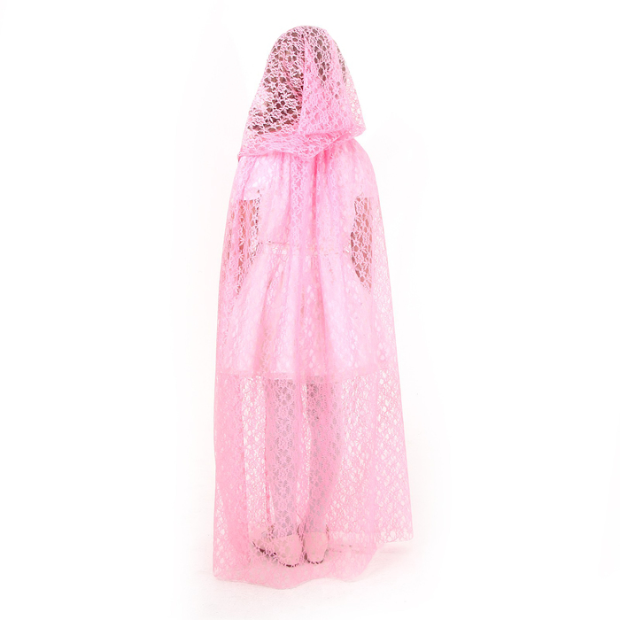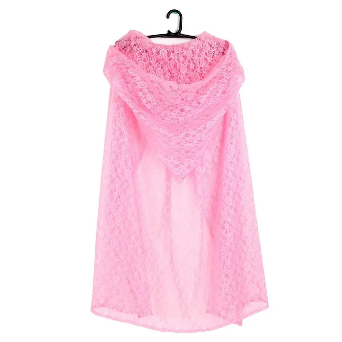 - Плащ из гипюра. Лёгкий и воздушный плащ из нежного гипюра розового цвета длиной 85 см. Он украсит любой наряд и добавит образу сказочности. Плащ на завязках с удобным капюшоном, который придаст образу таинственности.