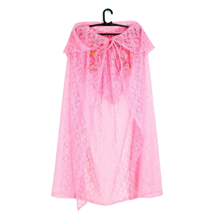 Карнавальный костюм «Принцесса», плащ гипюр, корона, длина 85 см, цвет розовый — Характеристики