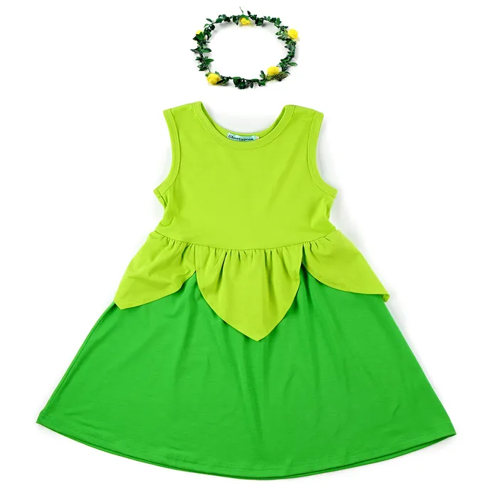 - Яркие зелёные цвета с элементами в виде листочков создают атмосферу природы и волшебства, идеально подходящую для образа феи.