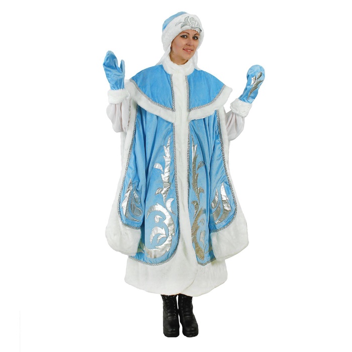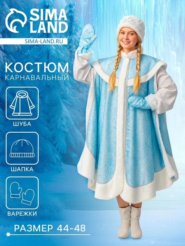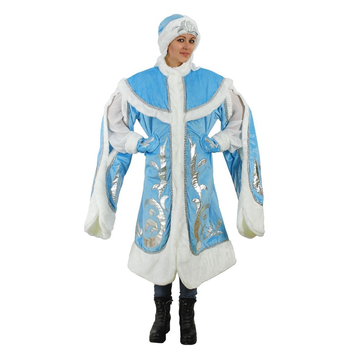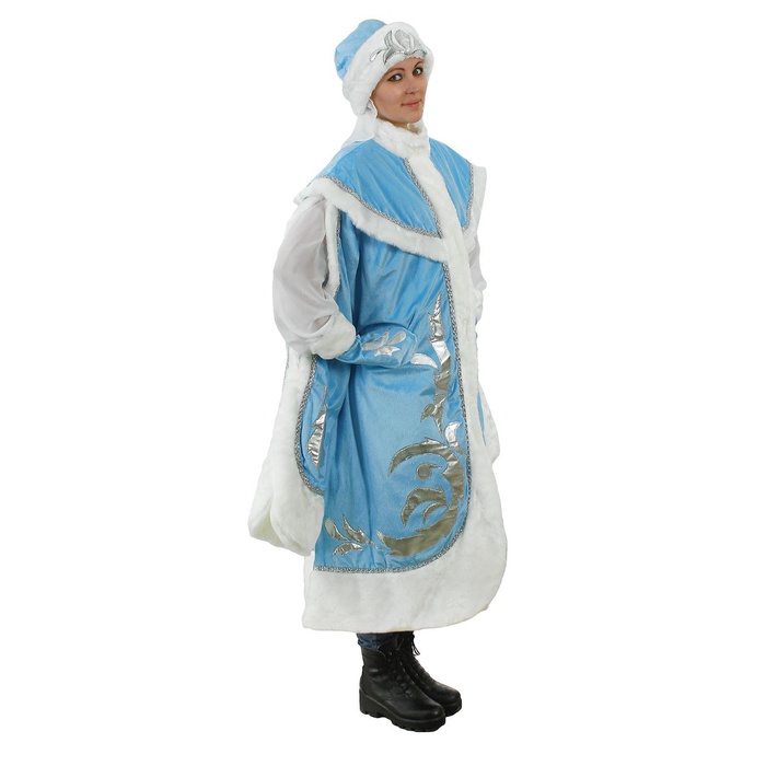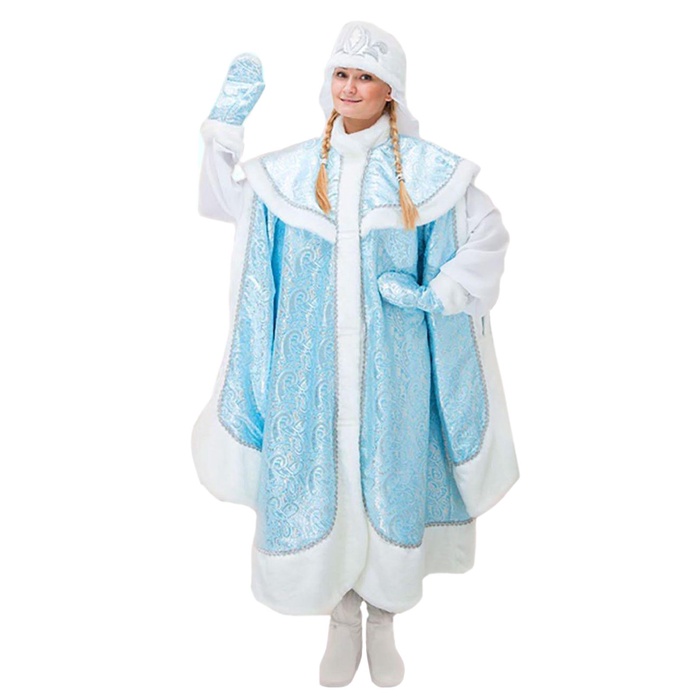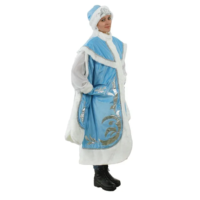 Карнавальный костюм «Снегурочка боярская» создаст беспроигрышный образ, который заворожит всех вокруг и порадует своим великолепием. Шуба из парчи с узорами превратит вас в самую стильную внучку Деда Мороза и перенесёт всех вокруг в добрую зимнюю сказку.