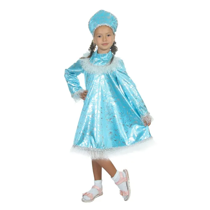 Костюм карнавальный детский «Снегурочка снежная», атлас, кокошник, платье, р-р 30, рост 110-116 см