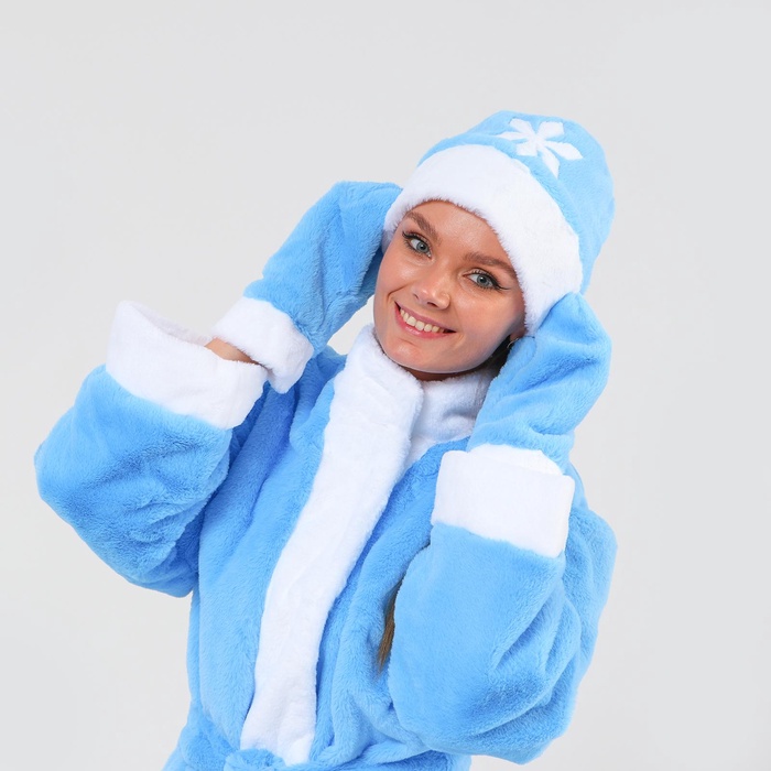 Карнавальный костюм «Снегурочка»: шуба, пояс, шапка, варежки, 44-50, рост 170 — Характеристики