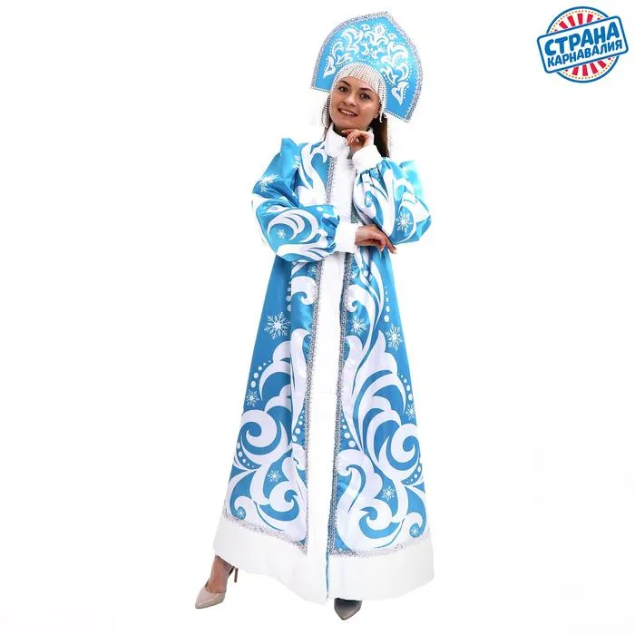 Костюм карнавальный «Снегурочка», шуба с узорами из парчи, кокошник, варежки, р-р 44-50, рост 170 см