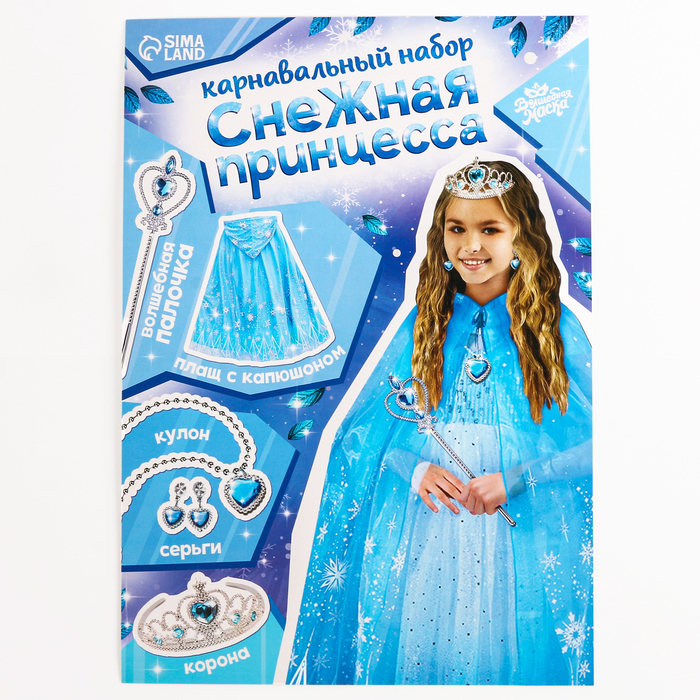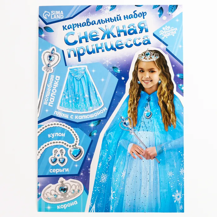 Этот карнавальный набор станет отличным выбором для детского праздника, новогоднего утренника или тематической фотосессии. Каждый элемент набора продуман до мелочей, чтобы ребенок мог почувствовать себя настоящей принцессой.
