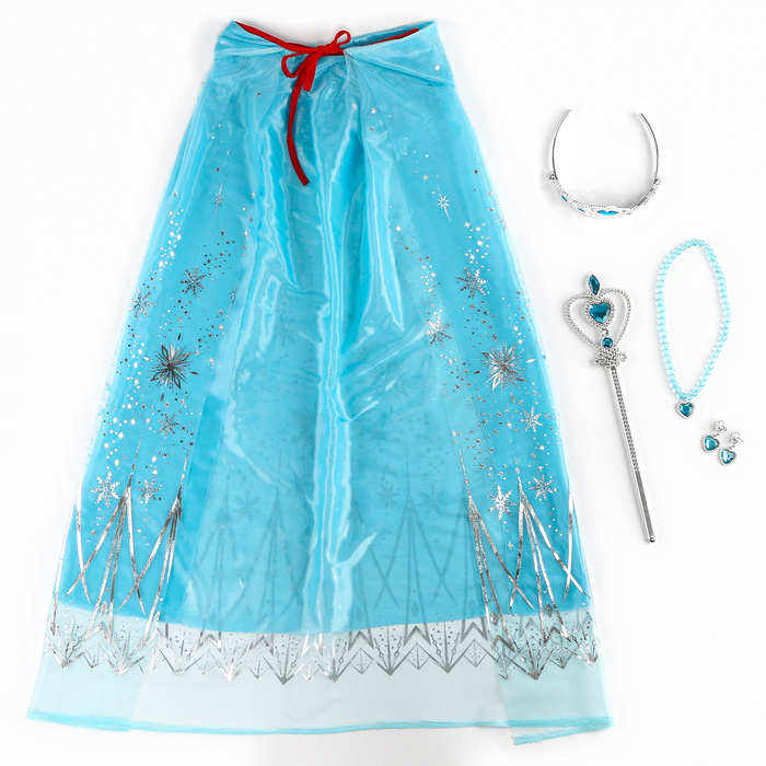 Карнавальный костюм «Снежная принцесса»: плащ, корона, кулон, серьги, палочка — Характеристики