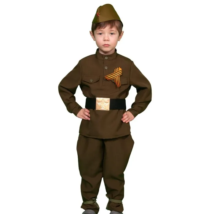 Детский карнавальный костюм «Военный», брюки, гимнастёрка, ремень, пилотка, р-р 28-32, рост 110-120 см
