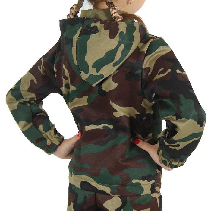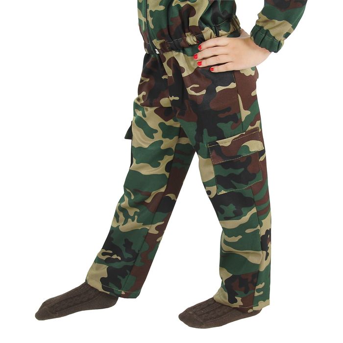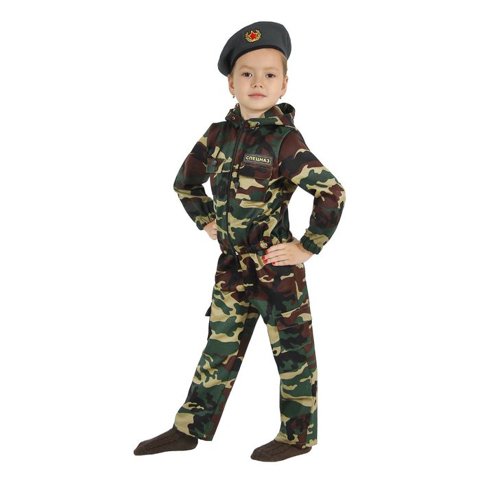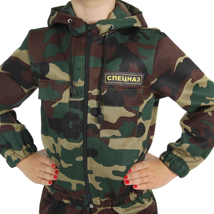 Карнавальный костюм «Спецназ», куртка с капюшоном, брюки, берет, рост 140 см превратит юную леди в отважную военнослужащую! Дизайн костюма максимально приближен к форме войск специального назначения. Высококачественный материал (хлопок 50 %, полиэстер 50 %) обеспечивает идеальную посадку и не сковывает движения.