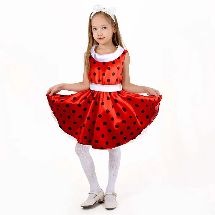 Карнавальный костюм «Стиляги 1», платье красное в чёрный горох, повязка, р. 34, рост 134 см — Характеристики