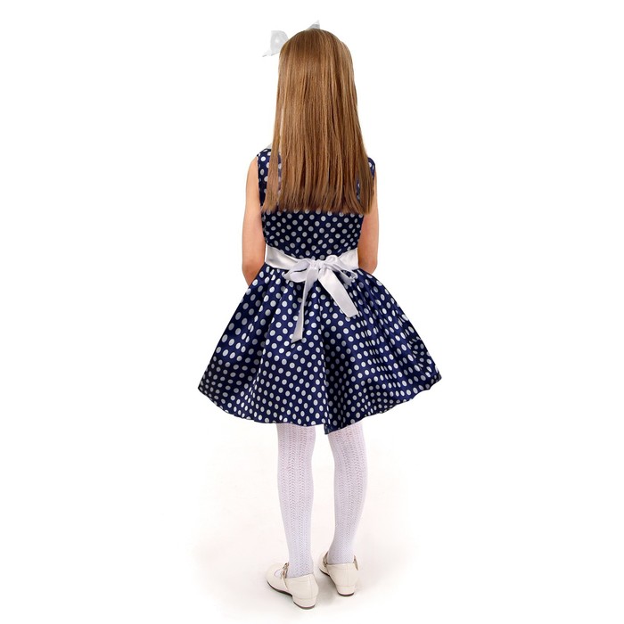 Карнавальный костюм «Стиляги 5», платье синее в белый горох, повязка, р. 34, рост 134 см