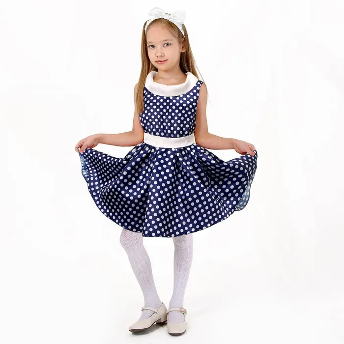 Карнавальный костюм «Стиляги 5», платье синее в белый горох, повязка, р. 36, рост 140 см — Характеристики