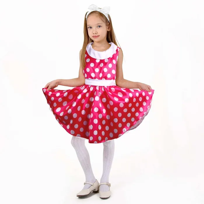 Карнавальный костюм «Стиляги 6», платье фуксия в белый горох, повязка, р. 34, рост 134 см — Характеристики