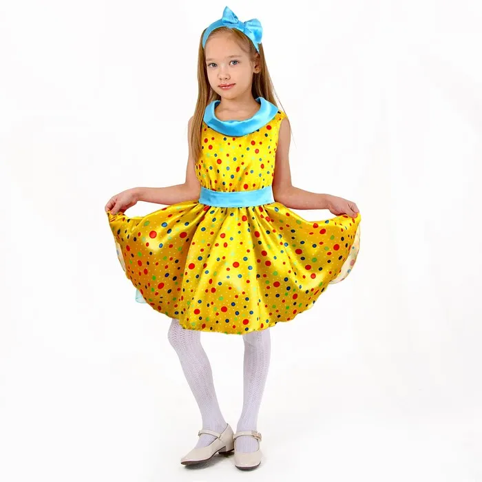 Карнавальный костюм «Стиляги 7», платье жёлтое в мелкий цветной горох, повязка, р. 30, рост 110-116 см — Характеристики