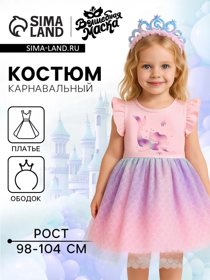 Карнавальный костюм «Стильная принцесса», ободок, платье с русалкой, рост 98-104 см — Характеристики