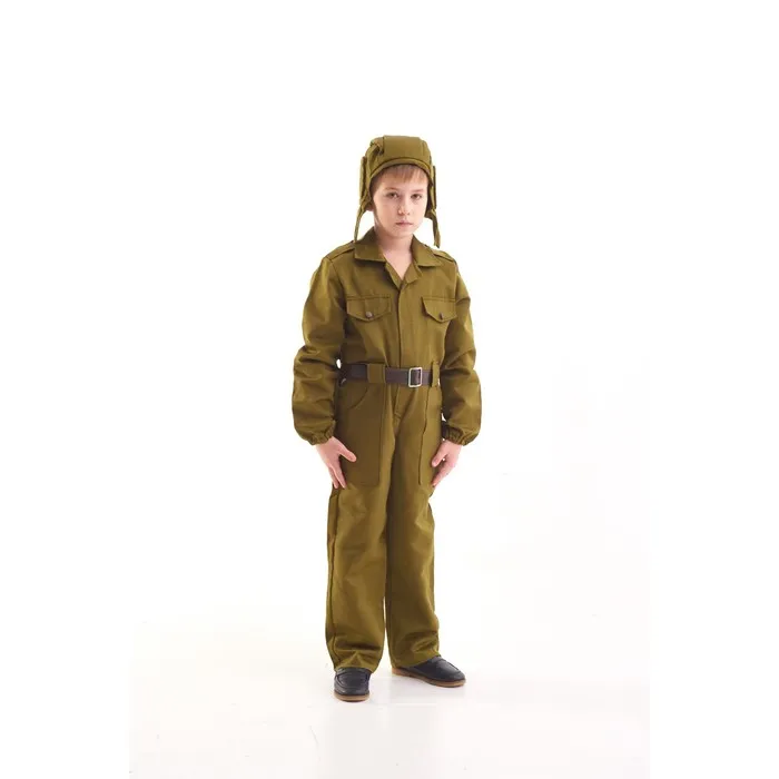Карнавальный костюм «Танкист», 8-10 лет, рост 140-152 см подойдёт для участия вашего малыша в патриотических представлениях, торжественных шествиях, тематических и театральных постановках. Комплект стилизован под форму танковых войск и передаёт всю атмосферу далёких 40-х.