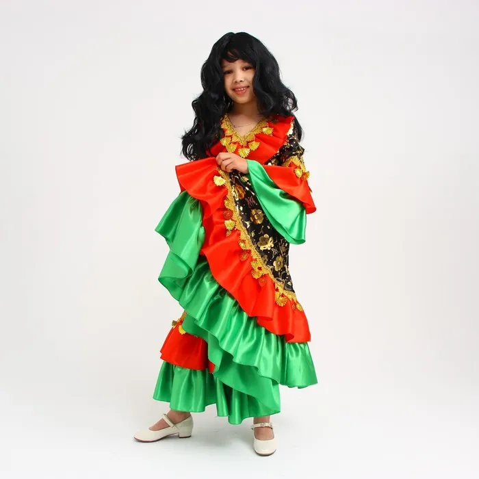 Карнавальный костюм «Цыганка», красно-зелёный, р. 32, рост 110-116 см — Характеристики