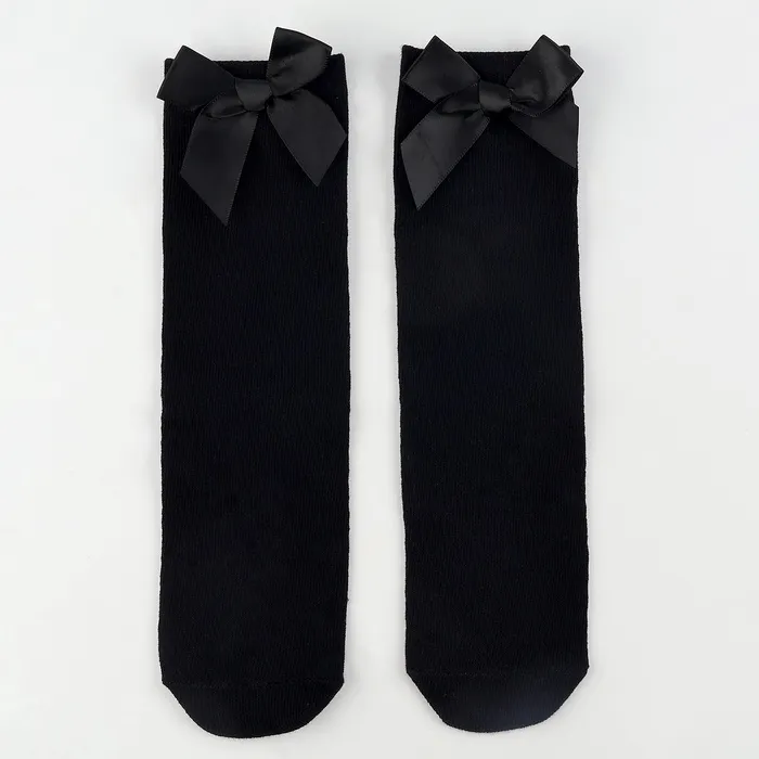 - Чулки чёрного цвета из плотной ткани с атласными бантиками. Они подчеркнут стройность ножек и добавят образу нотку кокетства.