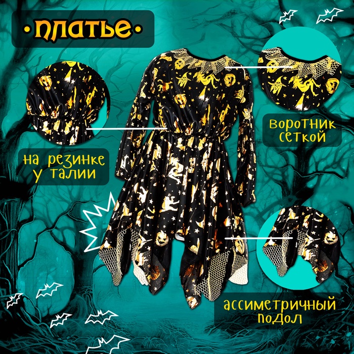 Карнавальный костюм «Ведьма»: платье, шляпа, чулки, сумка, рост 116-122 см — Характеристики
