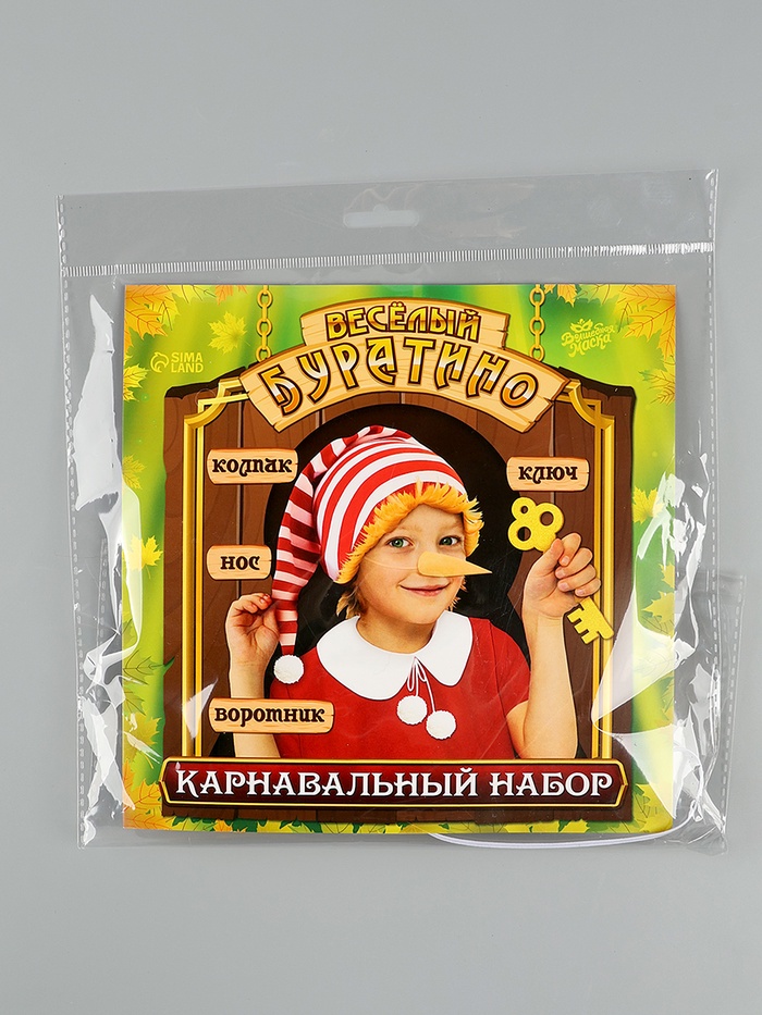 Карнавальный костюм «Весёлый Буратино»: колпак, воротник, нос, ключ — Характеристики