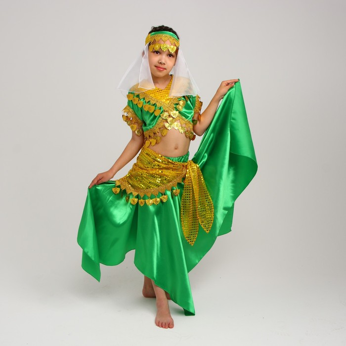 Карнавальный костюм «Восточная красавица. Азиза», цвет зелёно-жёлтый, р. 32, рост 122-128 см — Характеристики