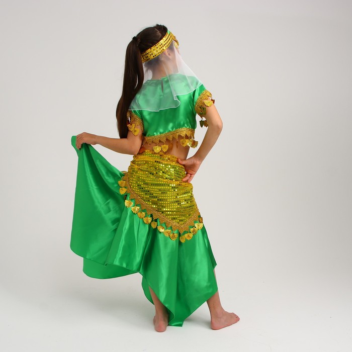 Карнавальный костюм «Восточная красавица. Азиза», цвет зелёно-жёлтый, р. 32, рост 122-128 см — Характеристики