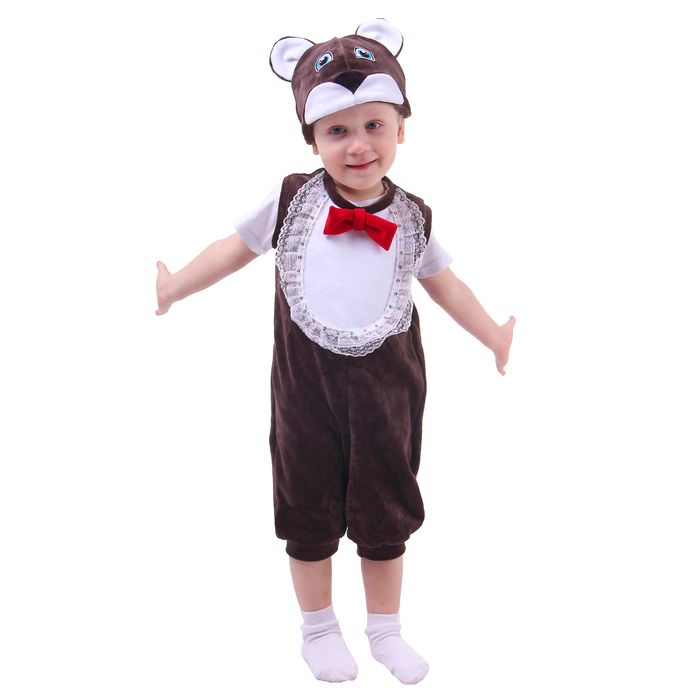 Карнавальный костюм для мальчика от 1,5-3-х лет «Медвежонок»: велюр, комбинезон, шапка
