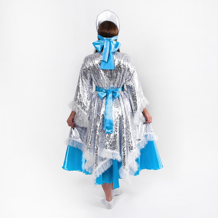 Костюм карнавальный «Снегурочка», шуба из парчи, шапка, варежки, серебристый, р. 50