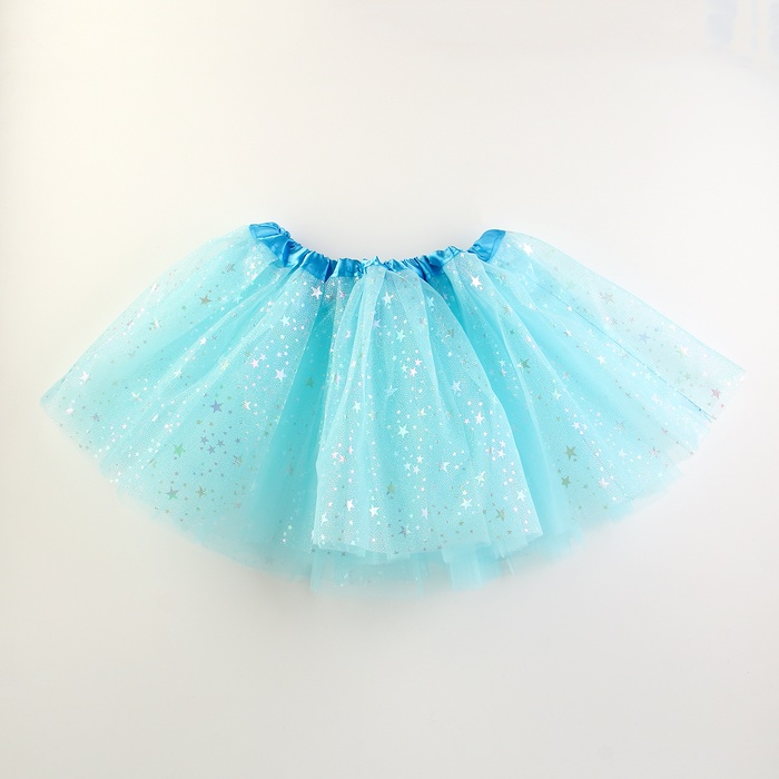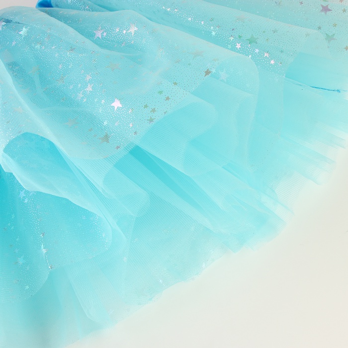 - Юбка — выполнена из лёгкой ткани и украшена множеством маленьких блестящих звёздочек, которые придают ей праздничный вид. Длина юбки позволяет свободно двигаться и чувствовать себя комфортно.
