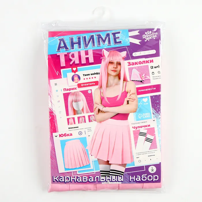 Карнавальный набор «Аниме тян»: юбка, парик, заколки, чулки, р. 44-46, розовый — Характеристики