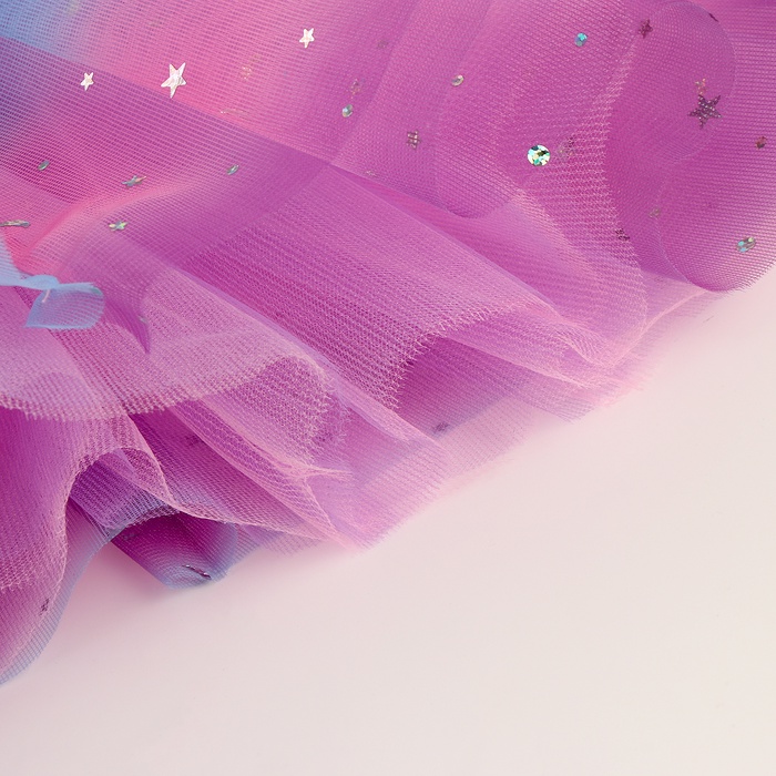 - Юбка — выполнена из лёгкой, воздушной ткани и украшена множеством маленьких блестящих звёздочек. Она свободно струится при движении, создавая эффект полёта. Юбка подойдёт для большинства девочек.