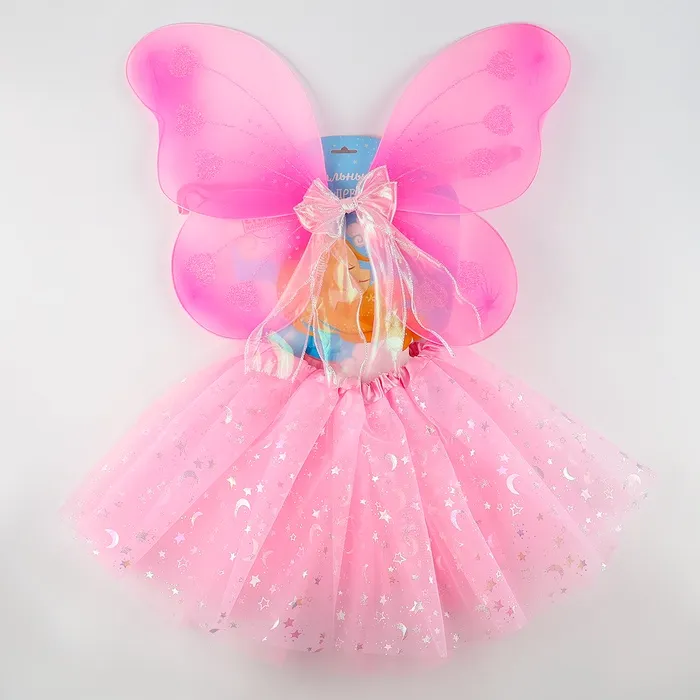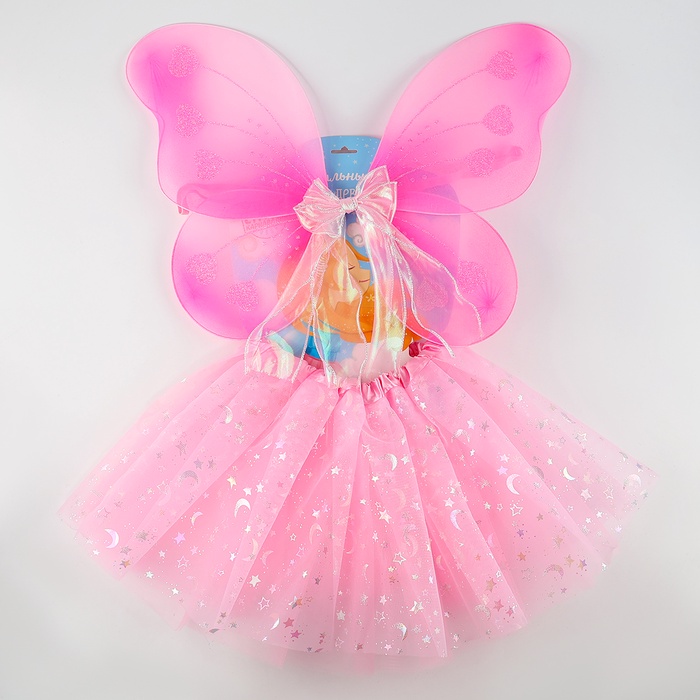 Карнавальный набор «Бабочка» с блёстками: юбка, крылья, цвет розовый — Характеристики