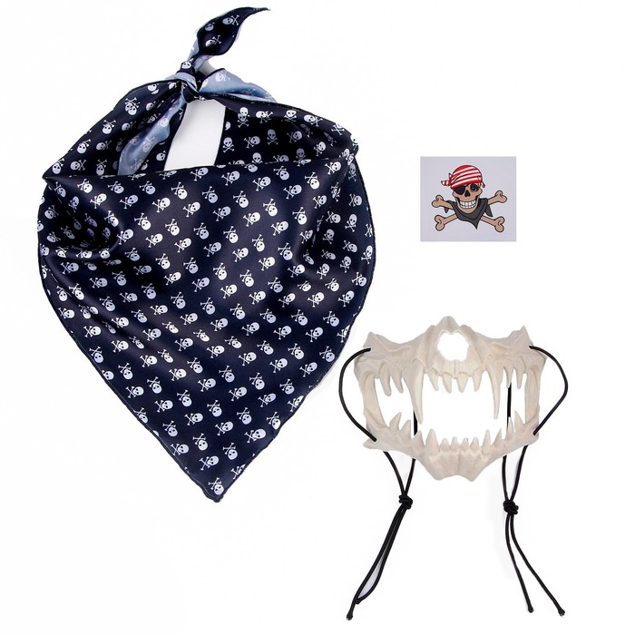 Карнавальный набор: бандана с черепами, маска челюсти, белая, термонаклейка — Характеристики