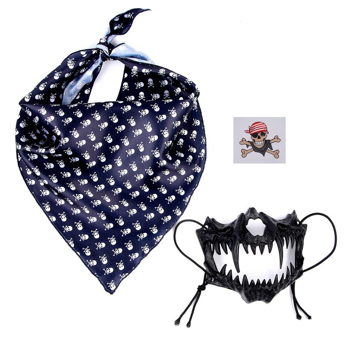 Карнавальный набор: бандана с черепами, маска челюсти, чёрная, термонаклейка — Характеристики