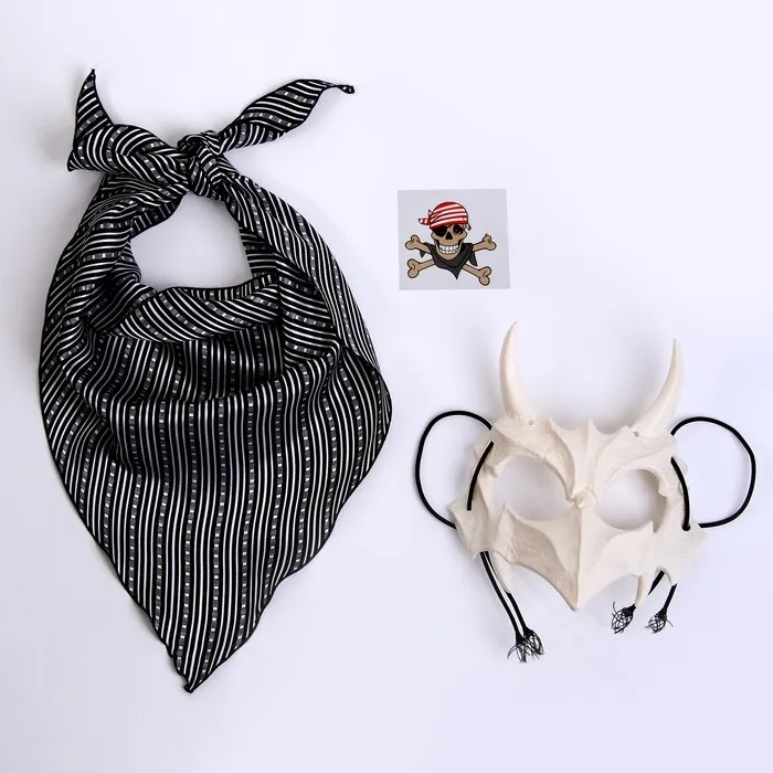 Карнавальный набор: бандана в полоску, маска с рогами белая, термонаклейка — Характеристики