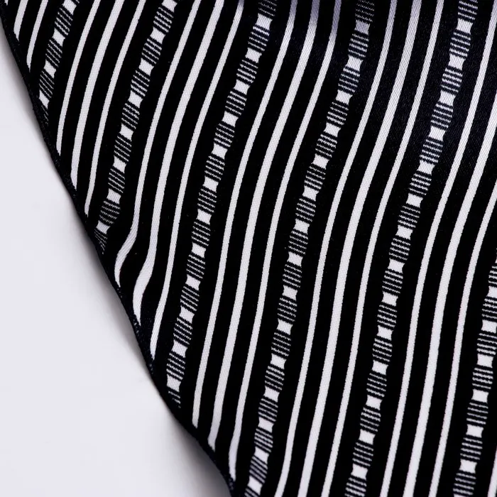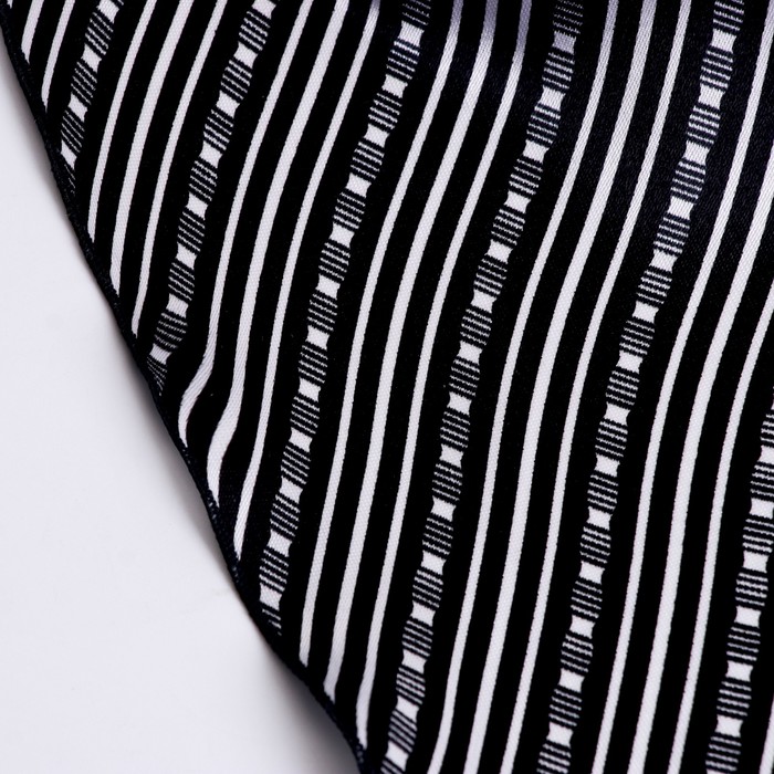 - Бандана в полоску — яркий акцент костюма. Изготовлена из качественного материала, она подходит для мужчин и женщин. Легко завязывается и удобна в использовании.