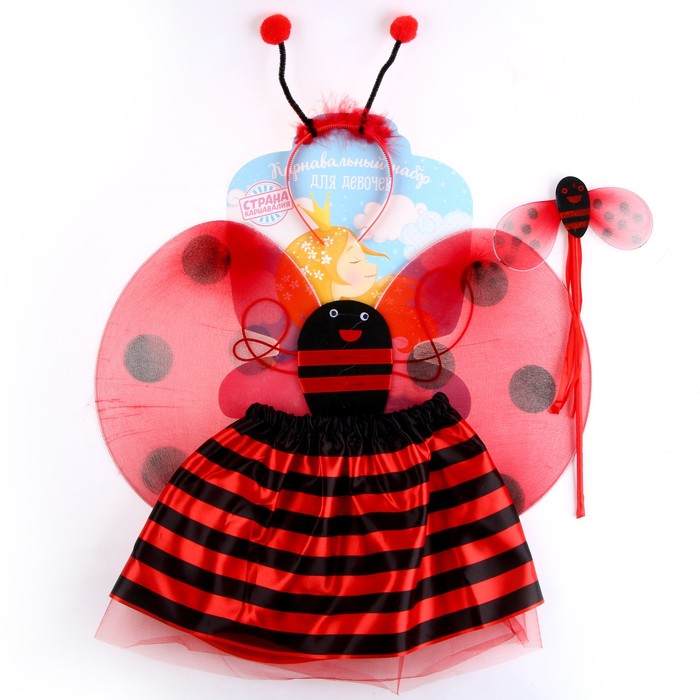 Карнавальный набор «Божья коровка» 4 предмета: юбка, крылья, жезл, ободок — Характеристики