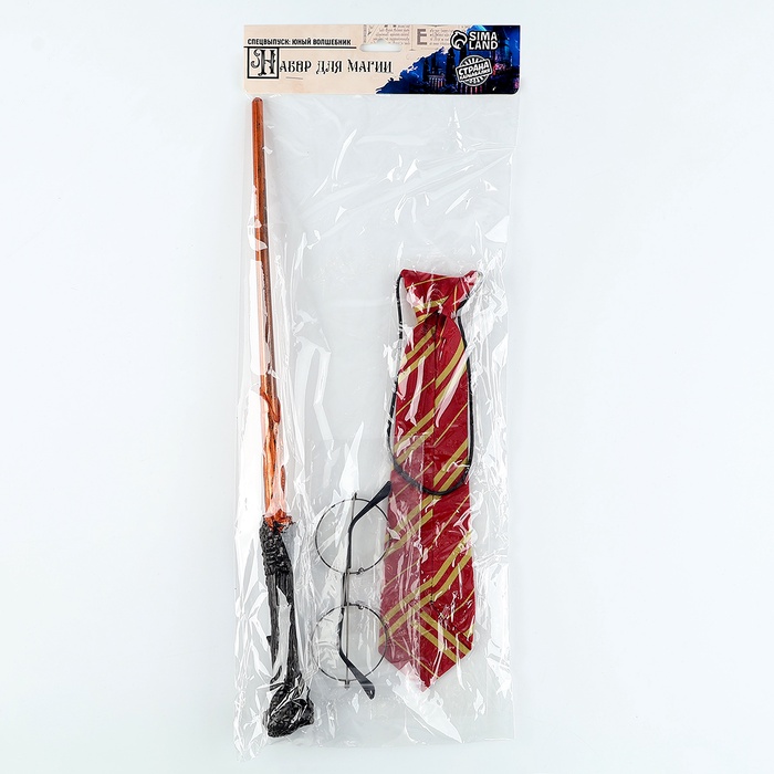 Набор для магии «Юный волшебник» поможет создать образ знаменитого персонажа, который знаком каждому. Круглые очки, волшебная палочка и галстук станут незаменимыми элементами костюма для тематических мероприятий или вечеринок. Галстук также подойдёт не только для создания завершенного образа, но и для повседневного использования, добавив нотку магии в любой наряд.
