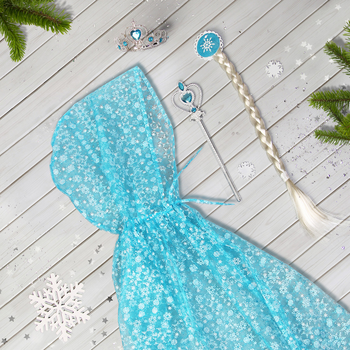 Карнавальный набор «Эльза», плащ из органзы, коса, жезл, корона, длина 100 см — Характеристики