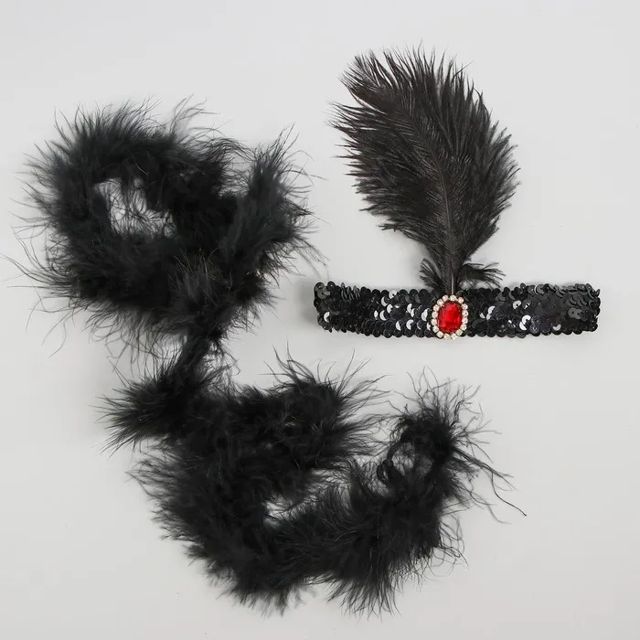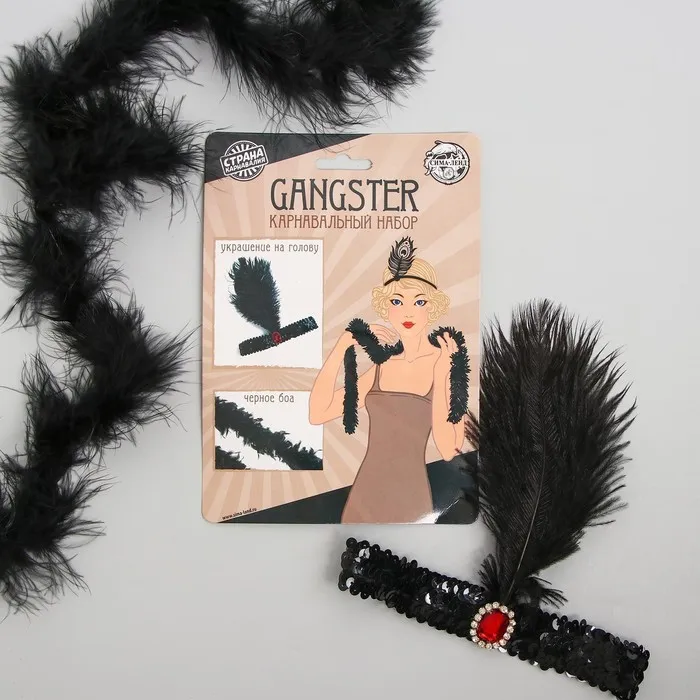 Карнавальный набор Gangster party, повязка на голову с пером, боа — Характеристики