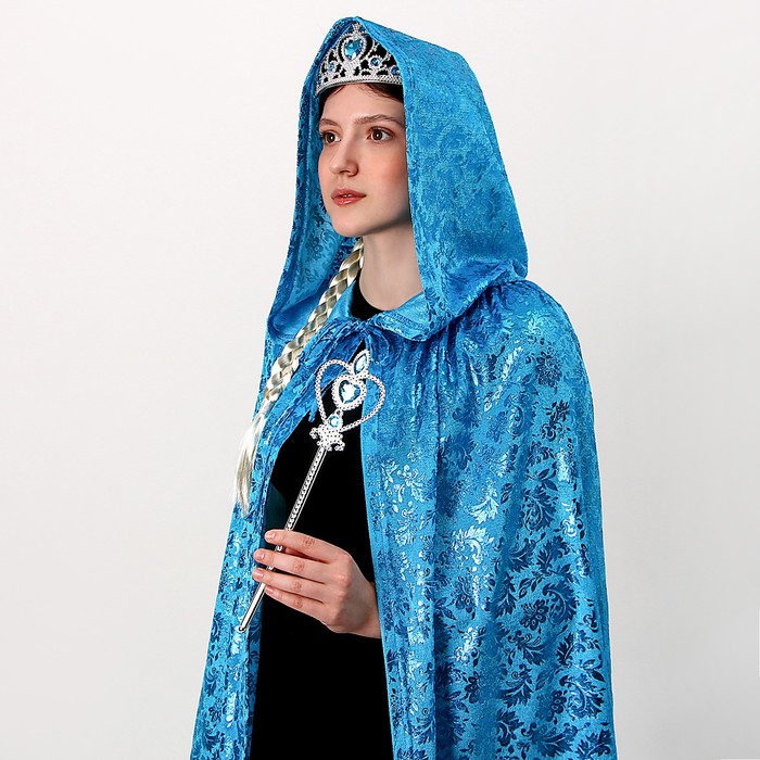 Карнавальный набор: голубой плащ с узором, коса, жезл, корона, длина 100 см