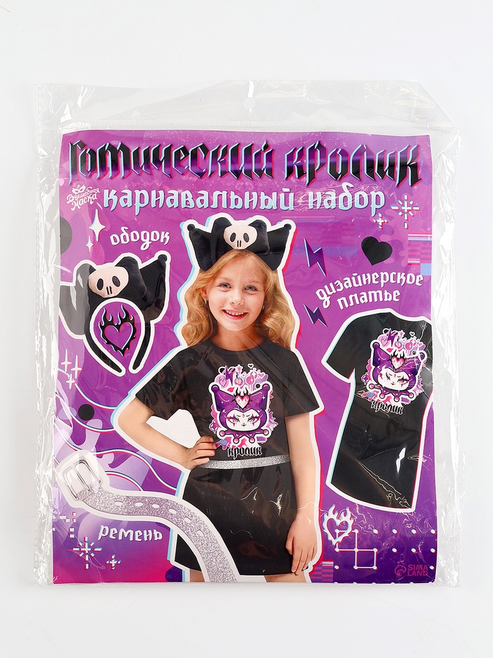 Карнавальный набор «Готический кролик»: платье, ободок, ремень, рост 122-162 см — Характеристики