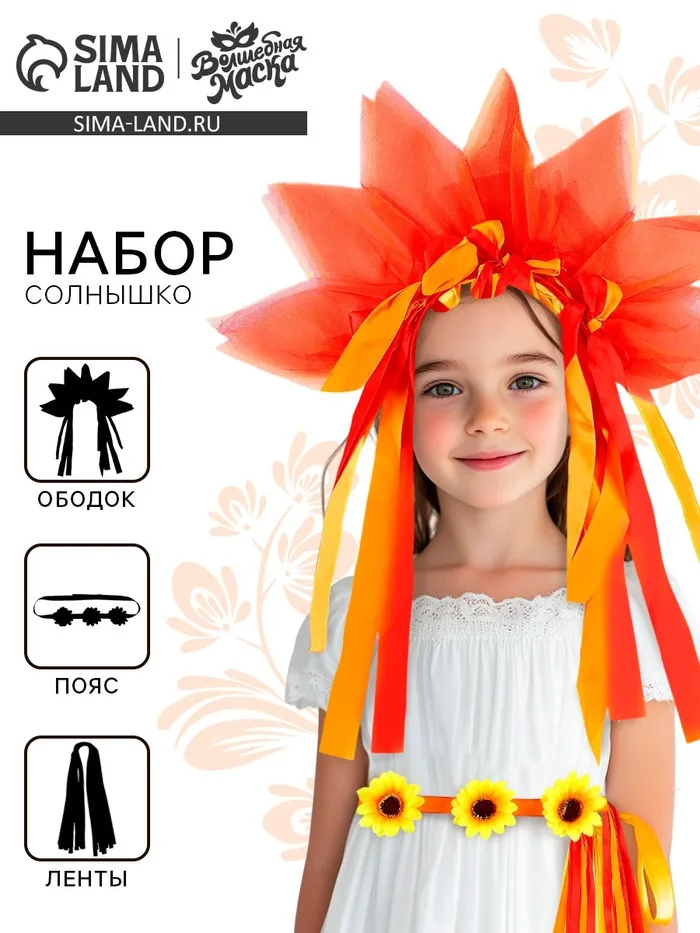 Карнавальный набор «Ясное солнышко» в красном и оранжевом цветах станет ярким акцентом на любом празднике. В комплект входят аксессуары, которые подчеркнут атмосферу веселья и солнечного настроения: ободок, пояс и праздничные ленты. Этот набор подойдёт для карнавальных мероприятий, фотосессий или творческих выступлений, добавляя образу выразительности и лёгкости.