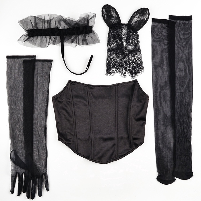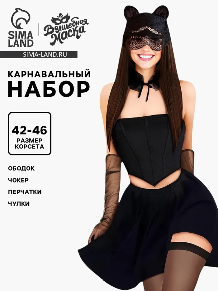 Карнавальный набор «Изящная кошечка»: ободок, корсет, чокер, перчатки, чулки, р-р 42-46, цвет чёрный — Характеристики