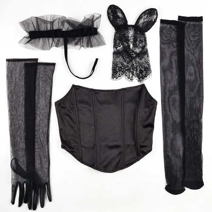 - Перчатки и чулки: Полупрозрачные чёрные перчатки и чулки создадут эффект загадочности и соблазнительности.