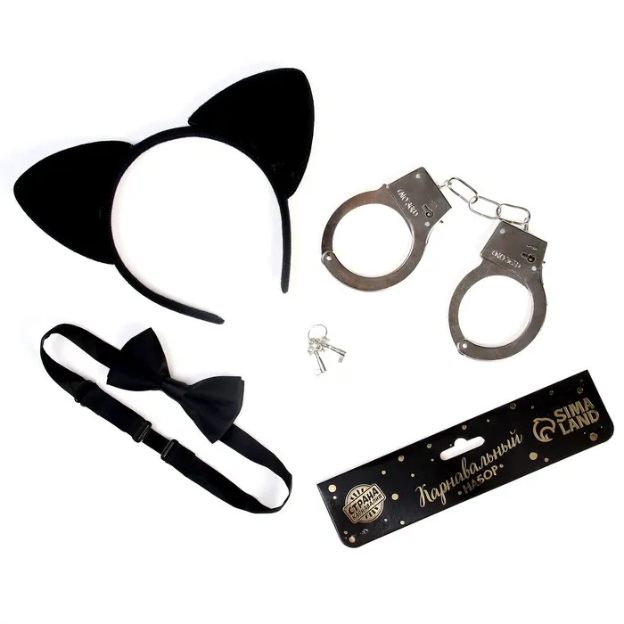 Карнавальный набор «Киса», ободок, бабочка, наручники — Характеристики