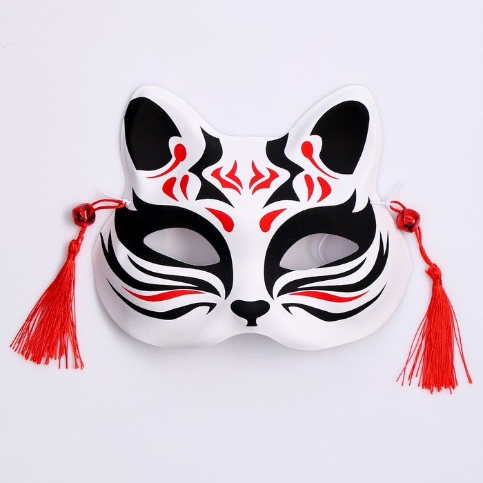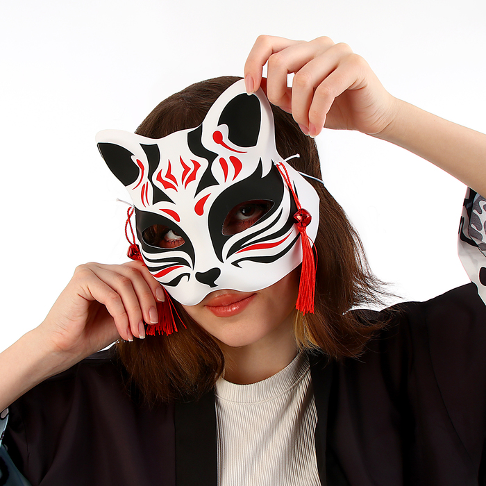 - Принт с изображением дракона и маска кицунэ с бубенчиками.