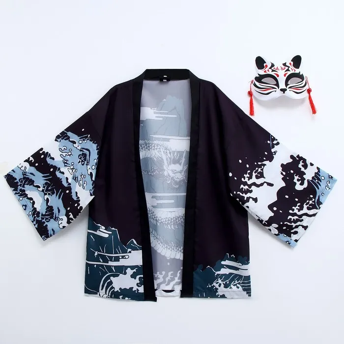 Набор «Кицунэ: дракон» — маска и яркий хаори с японским принтом привлечёт внимание на вечеринке и дополнит любой образ. Лёгкая и удобная накидка выполнена из полиэстера, поэтому она комфортна даже для ежедневного ношения. За нарядом легко ухаживать.